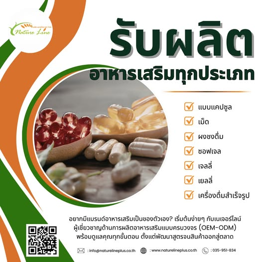 อยากมีแบรนด์อาหารเสริมเป็นของตัวเอง?เริ่มต้นง่าย ๆ กับ เนเจอร์ไลน์พลัส ผู้เชี่ยวชาญด้านการผลิตอาหารเสริมแบบครบวงจร (OEM/ODM) พร้อมดูแลคุณทุกขั้นตอน ตั้งแต่พัฒนาสูตรจนสินค้าออกสู่ตลาด