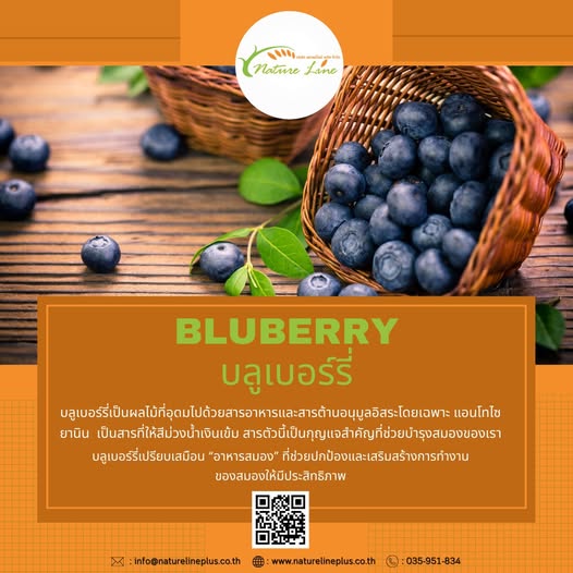 บลูเบอร์รี่เปรียบเสมือน “อาหารสมอง” ที่ช่วยปกป้องและเสริมสร้างการทำงานของสมองให้มีประสิทธิภาพ โดยเฉพาะสารแอนโทไซยานิน ที่ช่วยต้านอนุมูลอิสระและชะลอความเสื่อมของสมองได้
