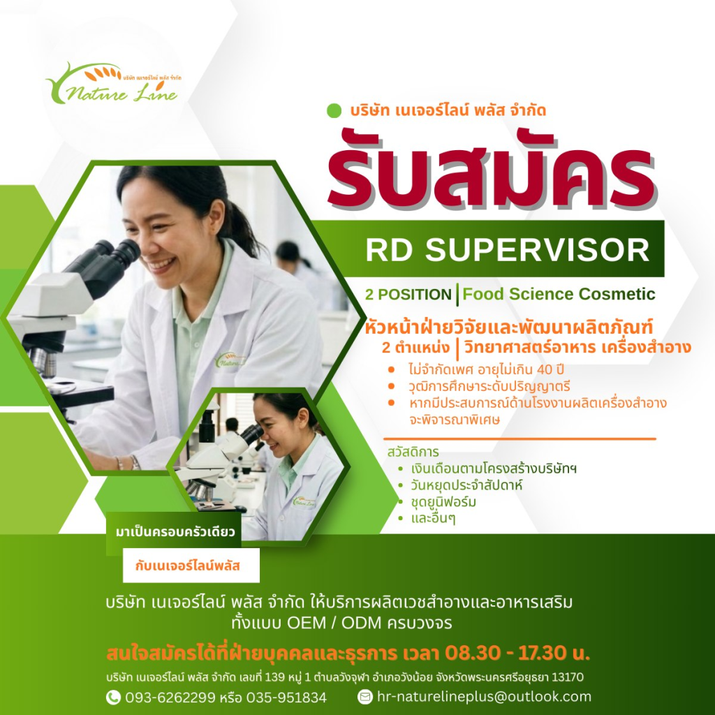จำนวน 2 ตำแหน่ง เน้นสาย วิทยาศาสตร์อาหาร เครื่องสำอาง