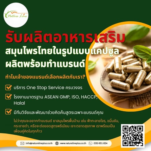 วันนี้คุณก็เป็นเจ้าของแบรนด์สมุนไพรไทยในรูปแบบแคปซูลได้ง่ายๆแค่ทักหา Natureline Plus แล้วให้เราดูแลตั้งแต่ไอเดียจนถึงสินค้าสำเร็จรูปบนชั้นวางเพราะเราเชื่อว่า ทุกแบรนด์มีตัวตน และทุกสูตรต้องใช่สำหรับคุณ