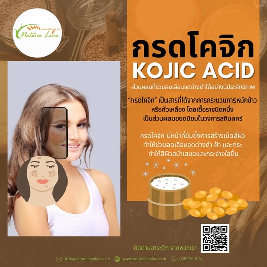 กรดโคจิก คือส่วนผสมที่ได้จากการหมักข้าว มีหน้าที่ยับยั้งการสร้างเม็ดสีผิว ทำให้ช่วยลดเลือนจุดด่างดำ ฝ้า และกระ ทำให้สีผิวสม่ำเสมอและกระจ่างใสขึ้น