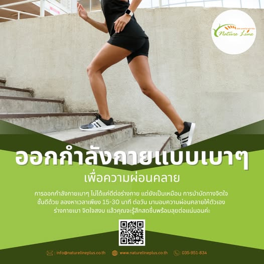 การออกกำลังกายเบาๆ ไม่ได้แค่ดีต่อร่างกาย แต่ยังเป็นเหมือน การบำบัดทางจิตใจ ชั้นดีด้วยค่ะ ลองหาเวลาเพียง 15-30 นาที ต่อวัน มามอบความผ่อนคลายให้ตัวเองดูนะคะ ร่างกายเบา จิตใจสงบ แล้วคุณจะรู้สึกสดชื่นพร้อมลุยต่อแน่นอนค่ะ