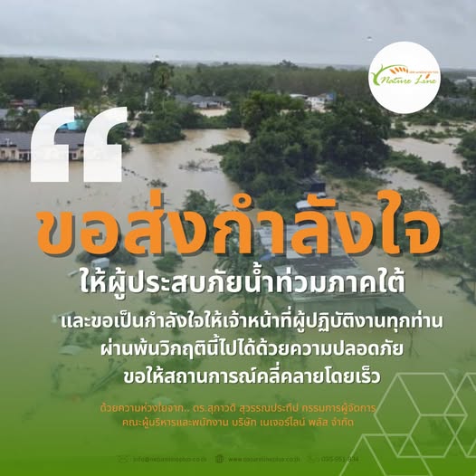 “เนเจอร์ไลน์ พลัส” ขอส่งกำลังใจ ให้ผู้ประสบภัยน้ำท่วมภาคใต้