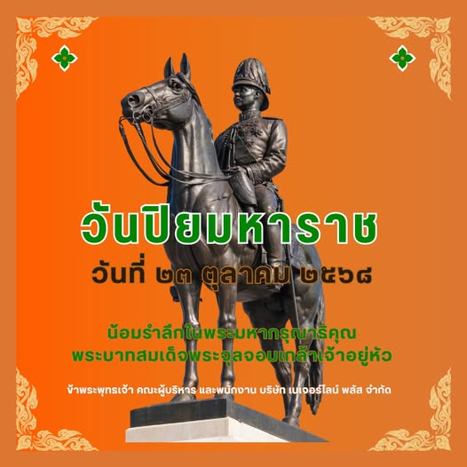 ๒๓ ตุลาคม วันปิยมหาราช 23/10/202503/11/2025 admin tukta ข่าวสารเนอเจอร์ไลน์พลัส ๒๓ ตุลาคม วันปิยมหาราช พระบาทสมเด็จพระจุลจอมเกล้าเจ้าอยู่หัว น้อมเกล้าฯ รำลึกในพระมหากรุณาธิคุณ ข้าพระพุทธเจ้า คณะกรรมการ ผู้บริหาร และพนักงาน บริษัท เนเจอร์ไลน์ พลัส จำกัด แชร์แบ่งปัน ข่าวสาร admin tukta
